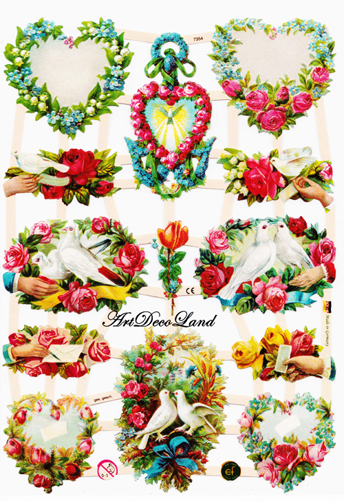 Decoratiuni embosate din hartie, ideale pentru decoupage si decorarea lucrarilor de scrapbooking, felicitari, invitatii si alte lucrari artizanale din hartie si carton. Se preteaza si la realizarea bijuteriilor decoupage sau din rasina.