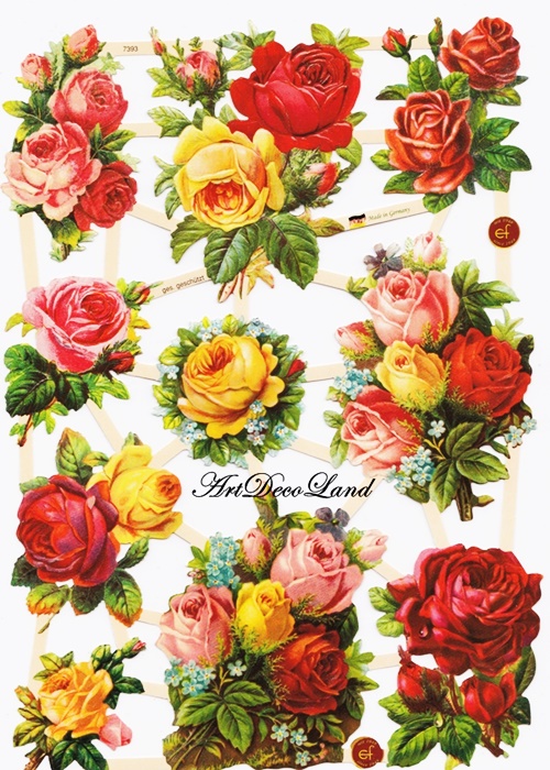 Decoratiuni embosate din hartie, ideale pentru decoupage si decorarea lucrarilor de scrapbooking, felicitari, invitatii si alte lucrari artizanale din hartie si carton. Se preteaza si la realizarea bijuteriilor decoupage sau din rasina.