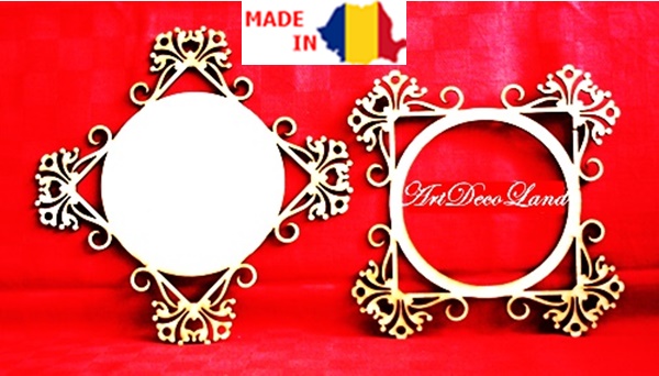 Rama foto din lemn - placaj 4mm - formata din doua parti ce pot fi folosite ca atare sau suprapuse precum modelul din poza alaturata; ideala pentru decorare prin tehnica servetelului, decoupage, pictura etc.